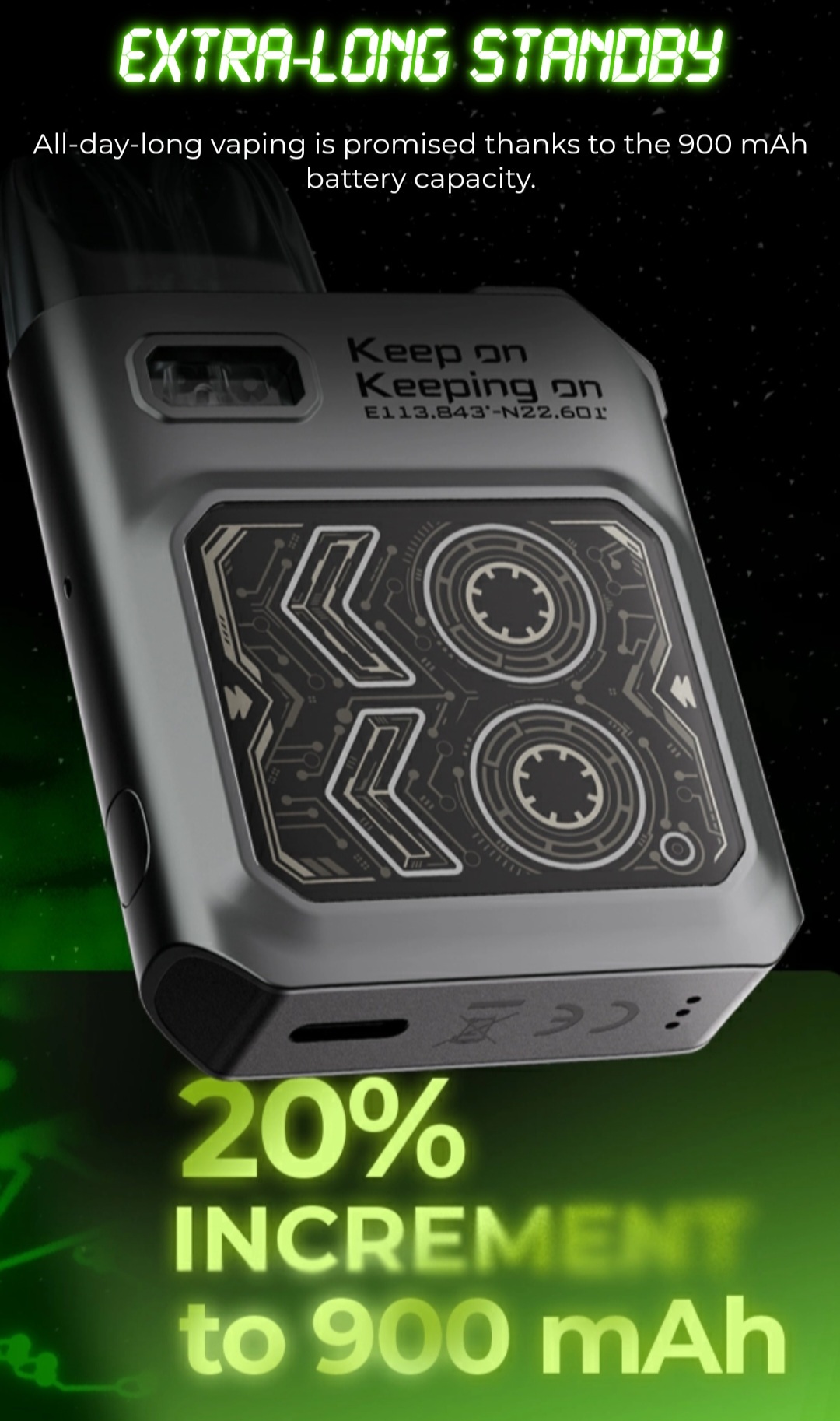 - 電容量:900mAh內建